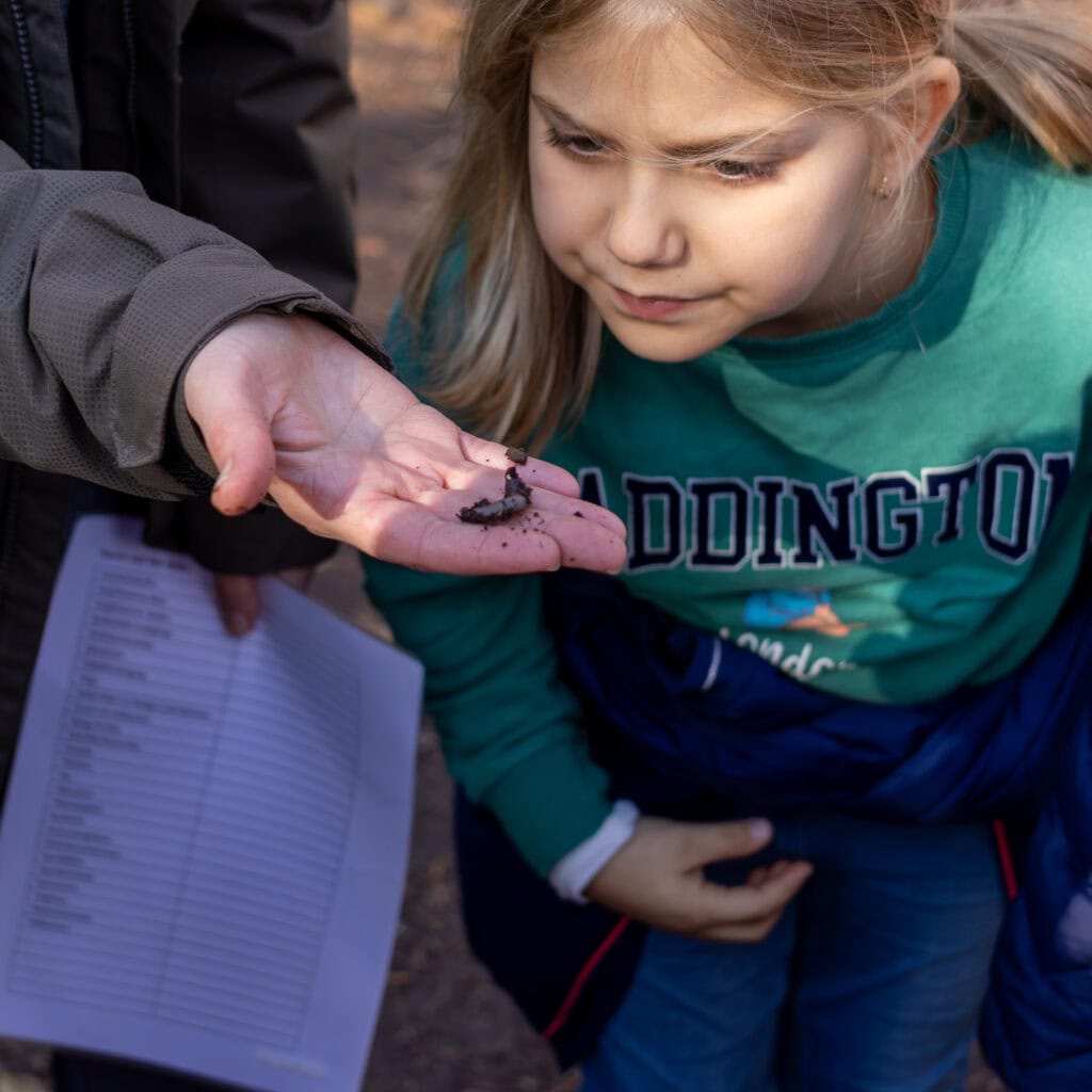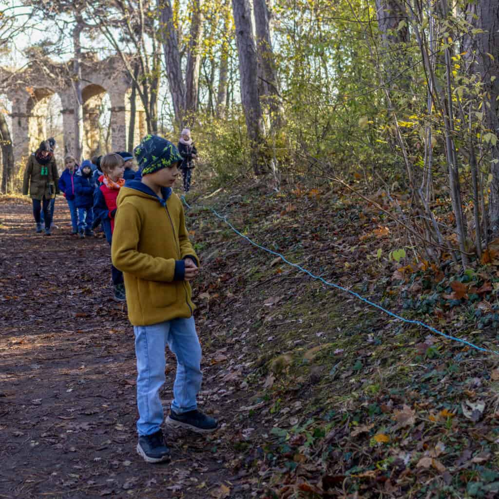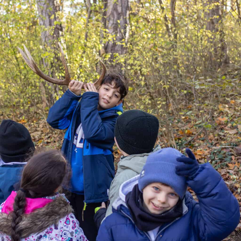 Die Kinder der 2a machten sich auf die Suche nach Tierspuren. Als Spur gelten nicht nur Abdrücke von Füßen, sondern auch Federn, Knochen, leere Schneckenhäuser, Ausscheidungen, Geweihe, Nester und Fraßspuren. Es konnte also so einiges entdeckt werden.