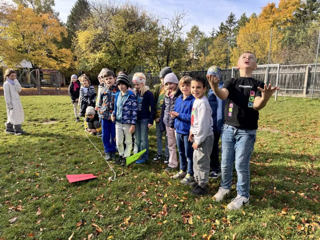 Die Kinder der 1. Klassen experimentieren mit einem Wollfaden. weiterlesen »