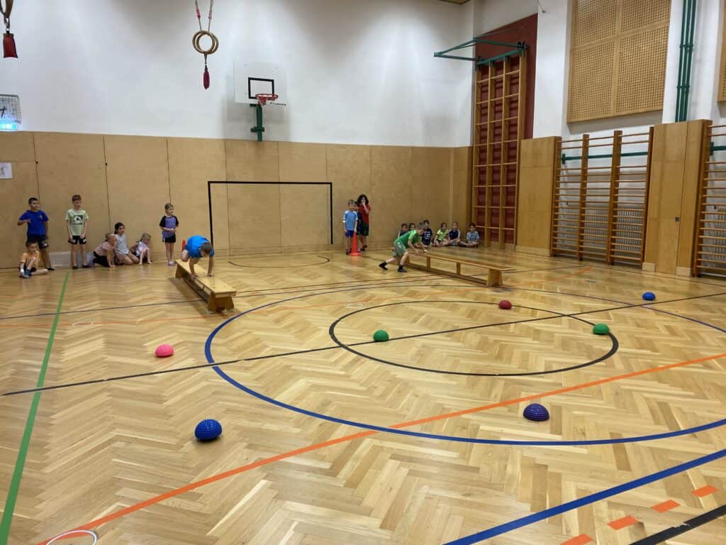 Die Kinder der 2c hatten in Bewegung und Sport das Thema „Koordination“. Ein Parcour musste bewältigt werden.