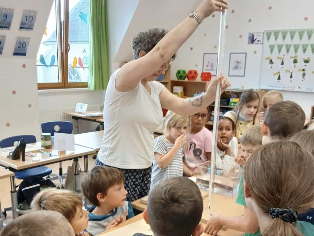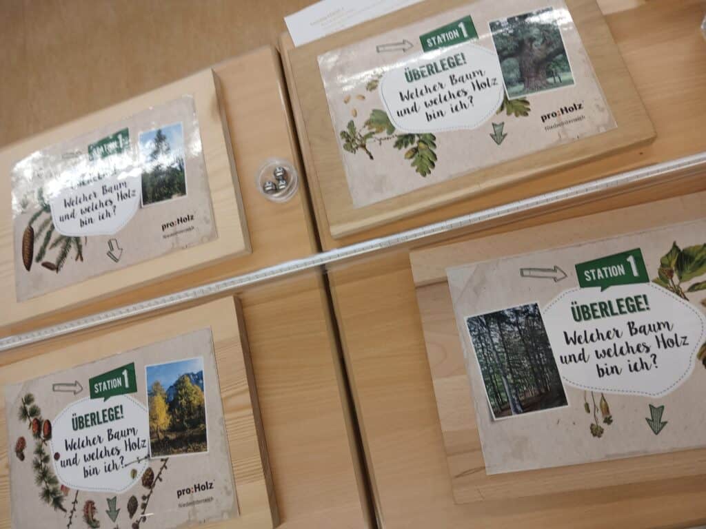 Die Klasse 2b hat am spannenden Workshop „Holz macht Schule“ teilgenommen und dabei viel über den Werkstoff Holz gelernt. In verschiedenen Stationen konnten die Kinder sehen, riechen, fühlen und raten – so wurde Holz mit allen Sinnen erlebt. Besonders begeistert waren sie von den Experimenten zur Holzhärte und Biegefestigkeit. Die Kinder staunten, wie vielseitig Holz eingesetzt werden kann. Holz ist genial – und das haben alle während des Workshops gemerkt!