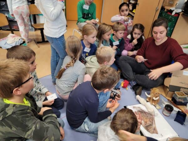 Die Koalakinder der 1B hatten ein archäologisches Meeting mit Frau Dr. Caroline Posch MA, die wissenschaftliche Mitarbeiterin und Kuratorin der Sammlung Steinzeit/ Prähistorische Abteilung im Naturhistorischen Museum Wien ist. Sie erarbeitete mit den Kindern das spannende Feld der Archäologie im Allgemeinen, brachte Repliken von Exponaten mit und erzählte über die Eiszeit. Weiters ging sie auf den Wunsch der Kinder ein, Genaueres über den Alltag der Menschen in der Steinzeit und besonders das Leben der Mammuts zu erfahren. Frau Dr. Posch beantwortete geduldig Fragen und konnte uns durch ihr Fachwissen Einsicht in den Alltag eines Forschers /einer Forscherin geben. Kindgerecht wurde an vorhandenes Wissen angeknüpft und viel Neues in den Unterricht implementiert. Das Projekt Wissensvermittlung, welches Experten kostenlos an die Schulen bringt, ist eine ganz tolle, innovative Idee, die den Kindern großen Spaß gemacht hat. Herzlichen Dank an Fr. Dr. Posch, die uns wieder dieses Erlebnis ermöglicht hat.