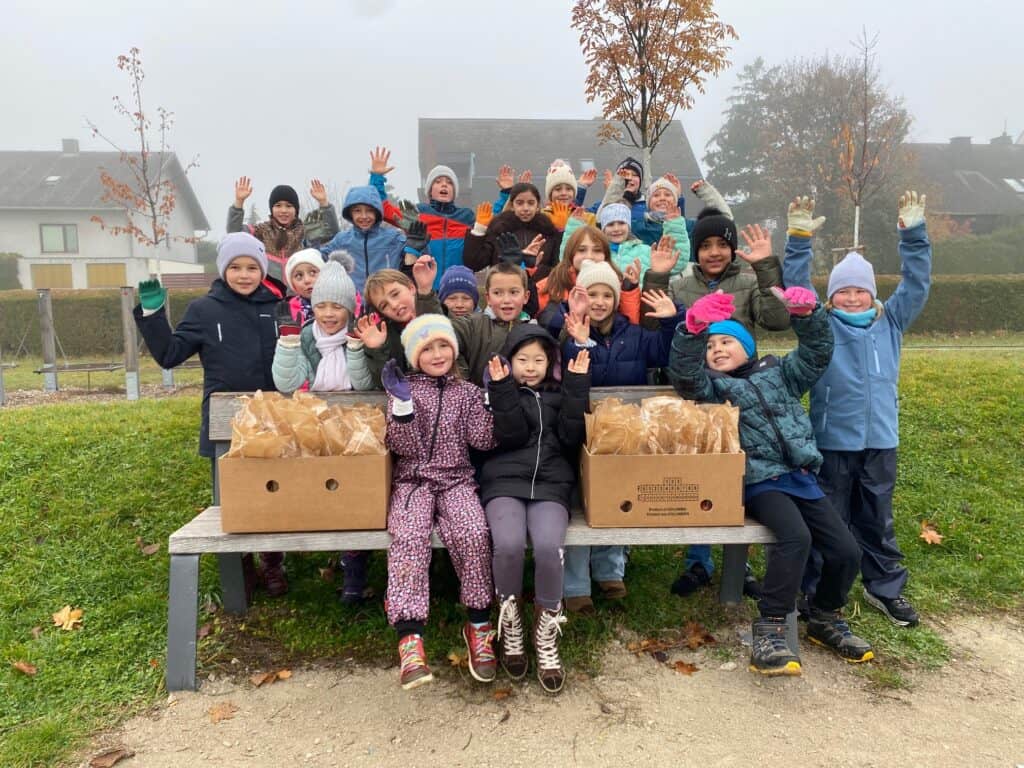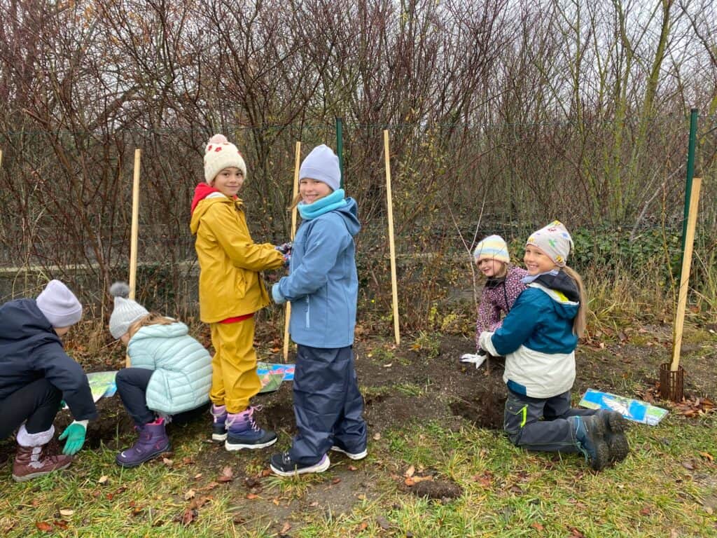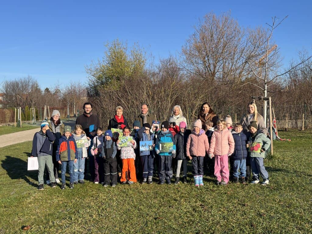 In der ersten Novemberwoche pflanzten alle 265 Kinder gemeinsam 118 heimische Sträucher – unterstützt vom Landschaftspflegeverein Thermenlinie sowie von Bürgermeister Dr. Andreas Linhart, Vizebürgermeisterin Gabriele Schiener und Gemeinderätin Silvia Weginger.
