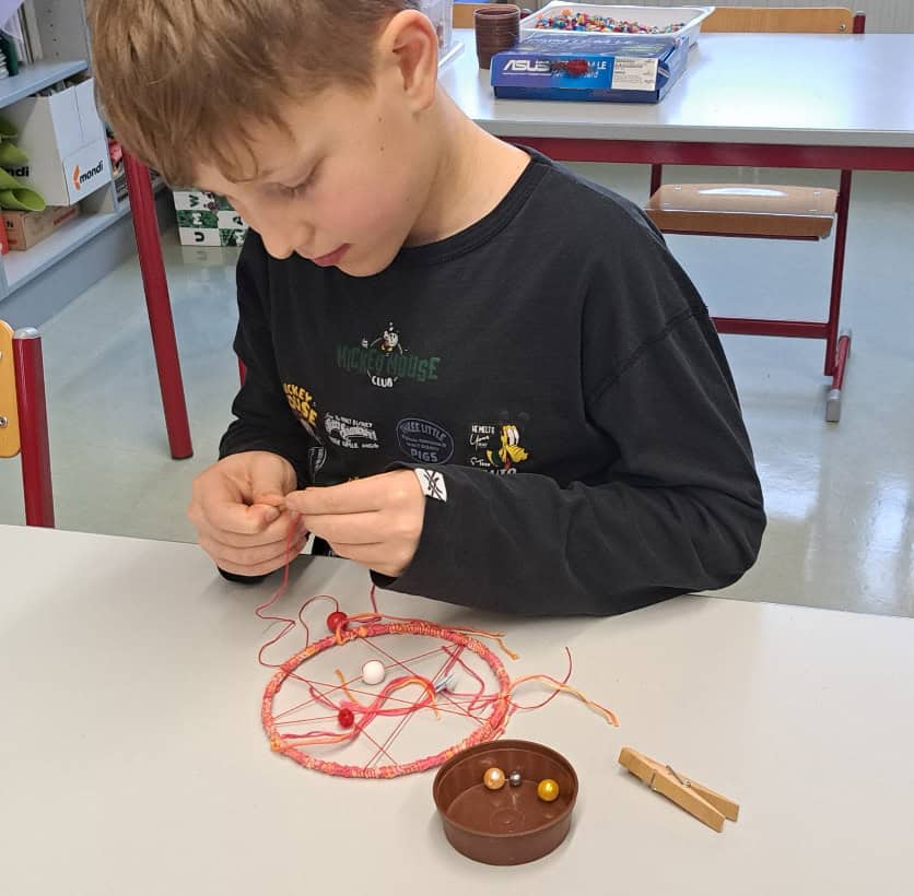 Die Kinder der 3. Klassen haben im Textilen Werkunterricht (ein Teilbereich von Technik und Design) ihren eigenen Traumfänger gemacht.